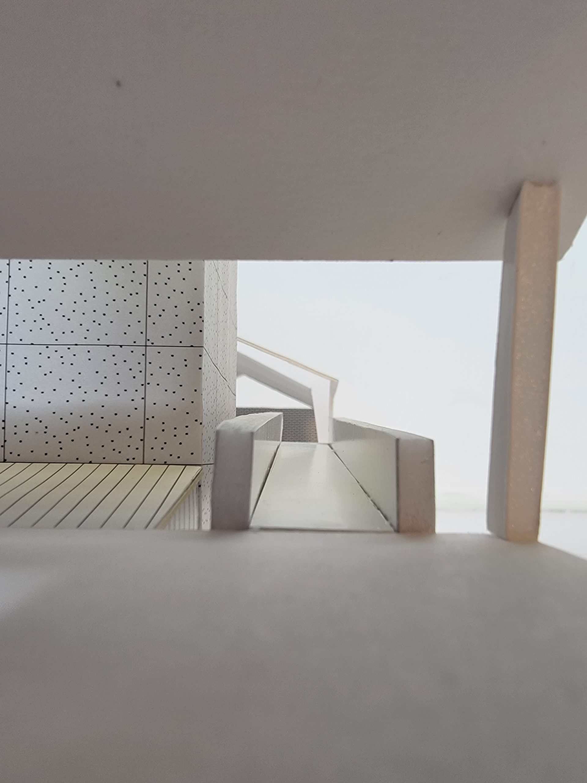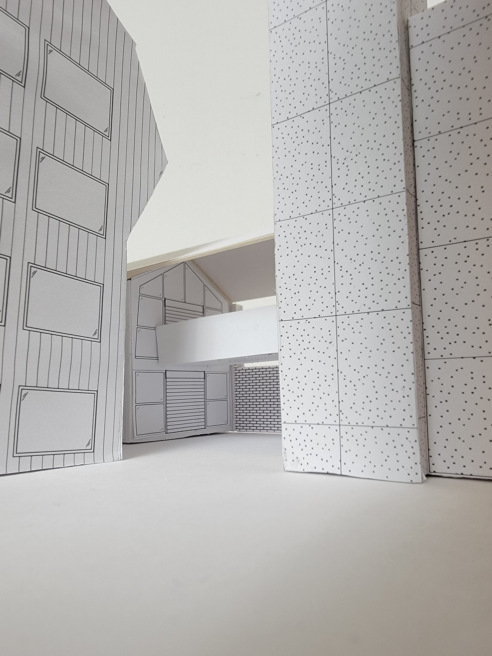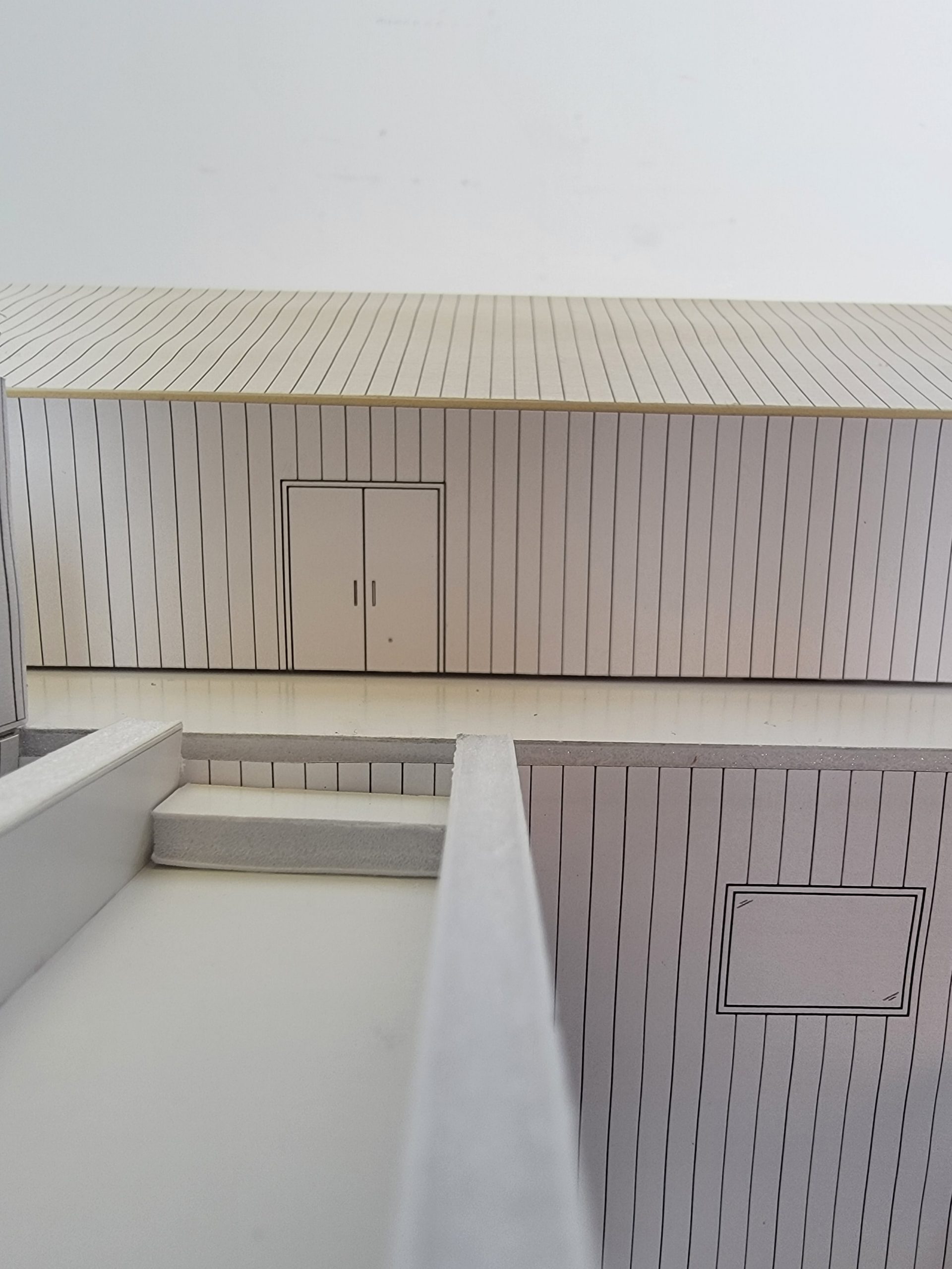 Pragmatically, pre-fab metal is very cheap and efficient system, which is important considering the very poor, crime-apt neighborhood in which the project sits. While a corten steel or mass timber building would make for a nice building, I chose instead to respect the surrounding industrial vernacular; choosing to elevate the cheap and easy vernacular as much as I could through intentional design choices. This not only allows for the project to integrate into the fabric of the surrounding site, but it also, in itself, a tribute to Donald Judd’s philosophy. For those unfamiliar with the artist, Judd was a sculptor that fabricated much of his work by designing drawings and commissioning craftsmen to fabricate them. His works were highly industrial, precise, and they were fabricated, opposed to being sculpted. Judd’s own architecture, which came at the end of his career, often utilized existing buildings and systems, including pre-fab systems, and so I felt it fitting to do the same for a building that would house his works.
