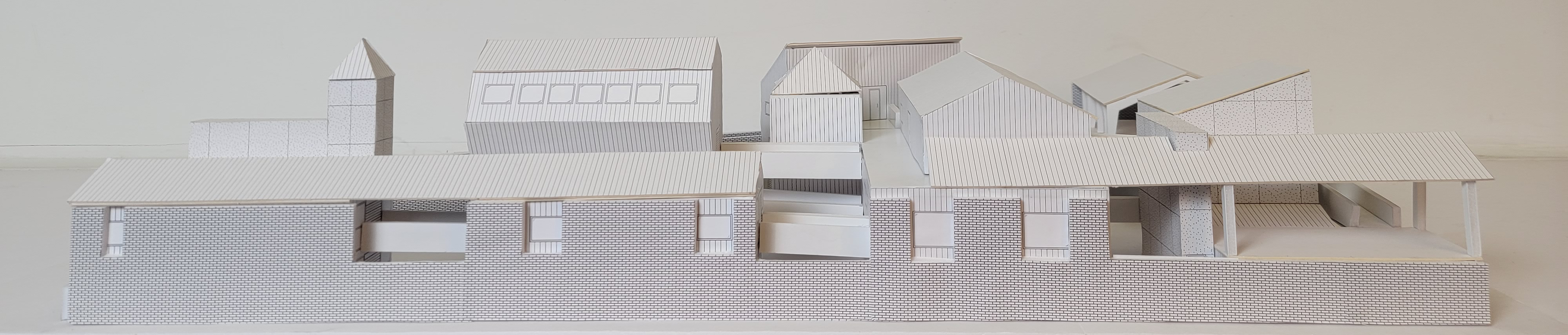 Rather than design something completely bespoke to be fitted to the site, I instead chose to utilize the surrounding industrial vernacular for the design of my project. For nearly all of the project, Butler pre-fab metal building systems were used. Choosing to go with a pre-fab system for a community center and sculptural archive may seem like an odd choice, but I felt it was an important choice for a few reasons.